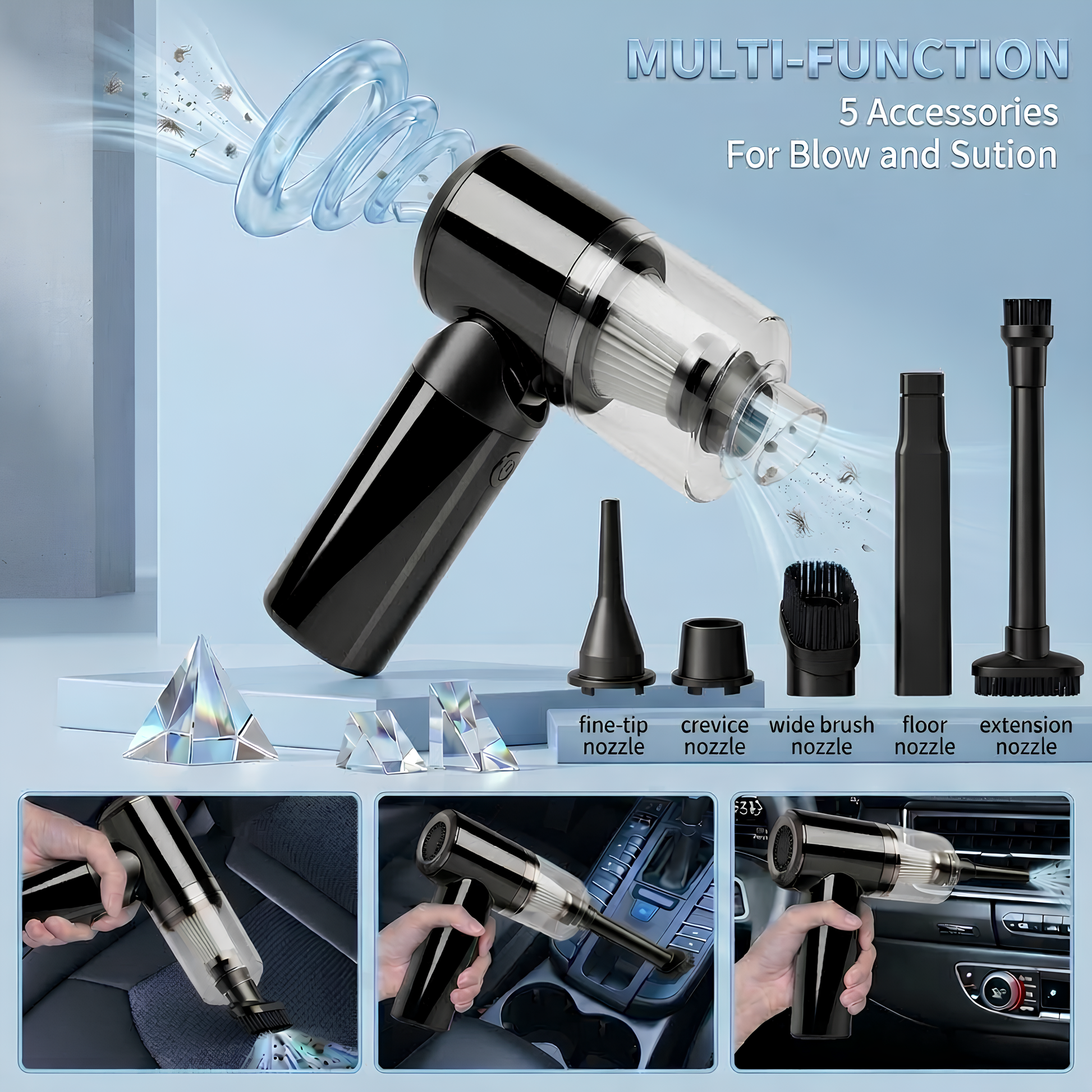 3 - in-1 Portable Vacuum Cleaner & Air Duster